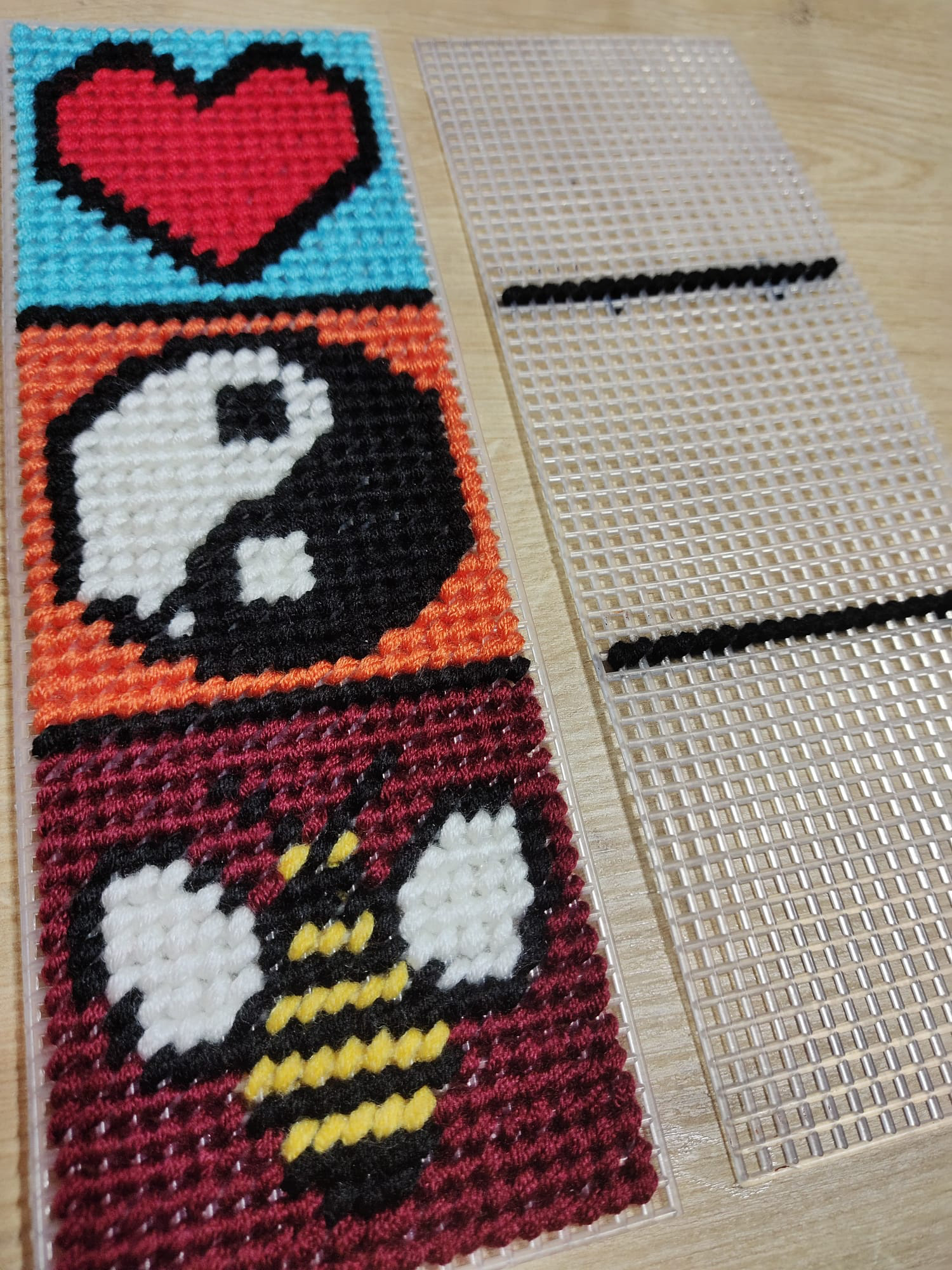 Cross-stitch: Making the full X instead of the half stitch using plastic canvas. Both are fine.