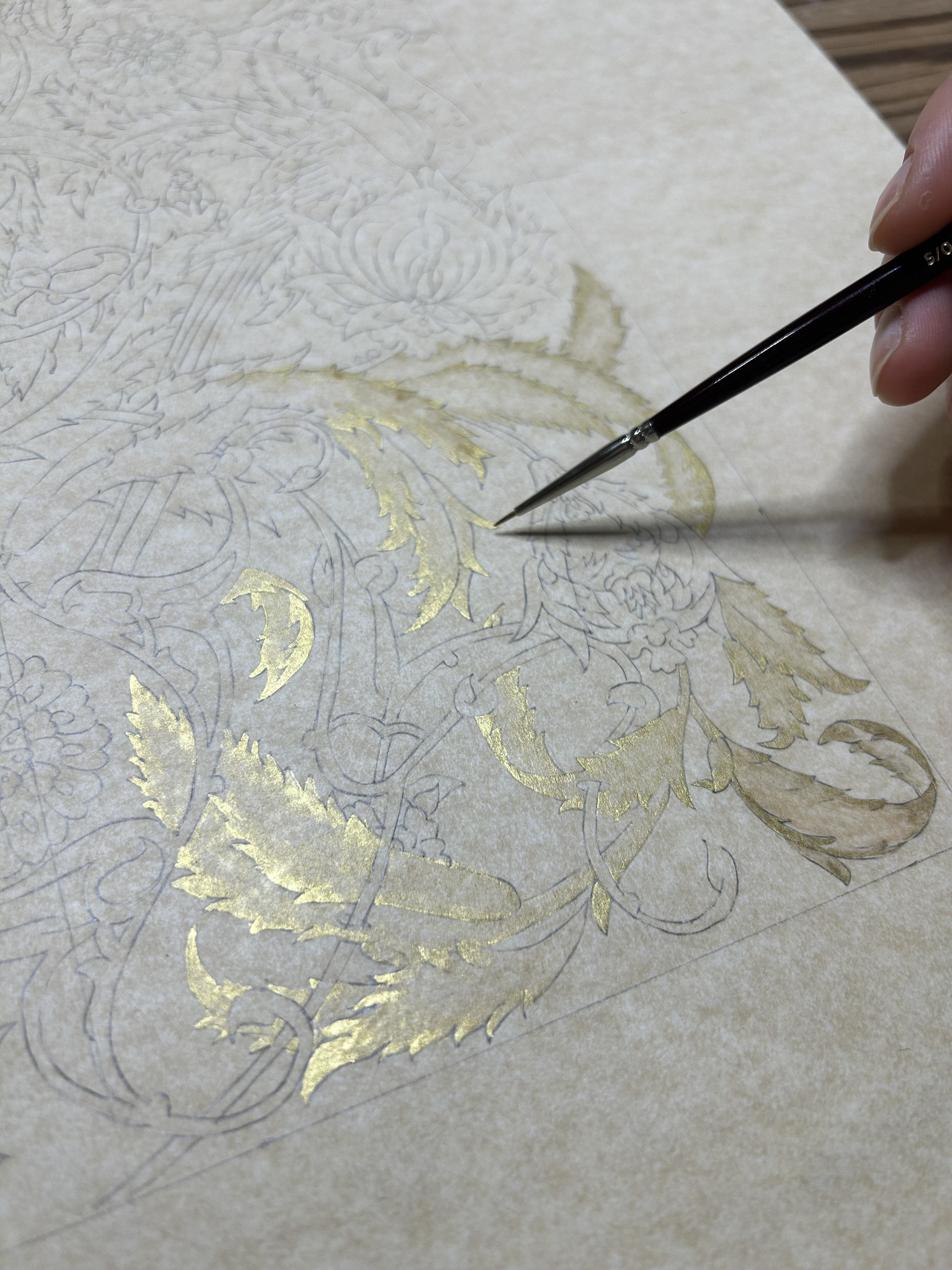 I used traditional ancient Tezhip to create the art. Tezhip, derived from the word "zeheb" meaning "gold," is the art of illumination that prominently features gold to enhance the beauty and significance of manuscripts and artworks.