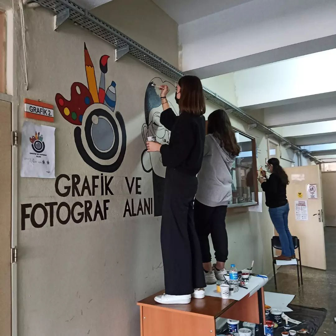 I have created painting objects and a camera lens logo to represent the workshop area as an assignment that my school selected to be painted on the Graphic and Photography entrance.