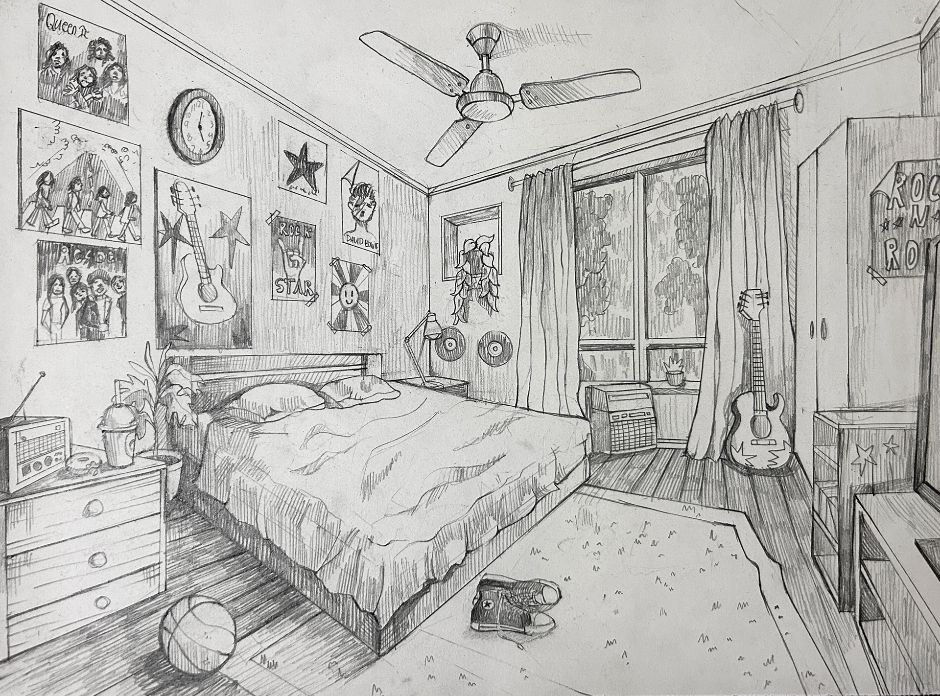 Two-Point Perspective – Uses two vanishing points, commonly for drawing objects at an angle, such as a corner of a building.