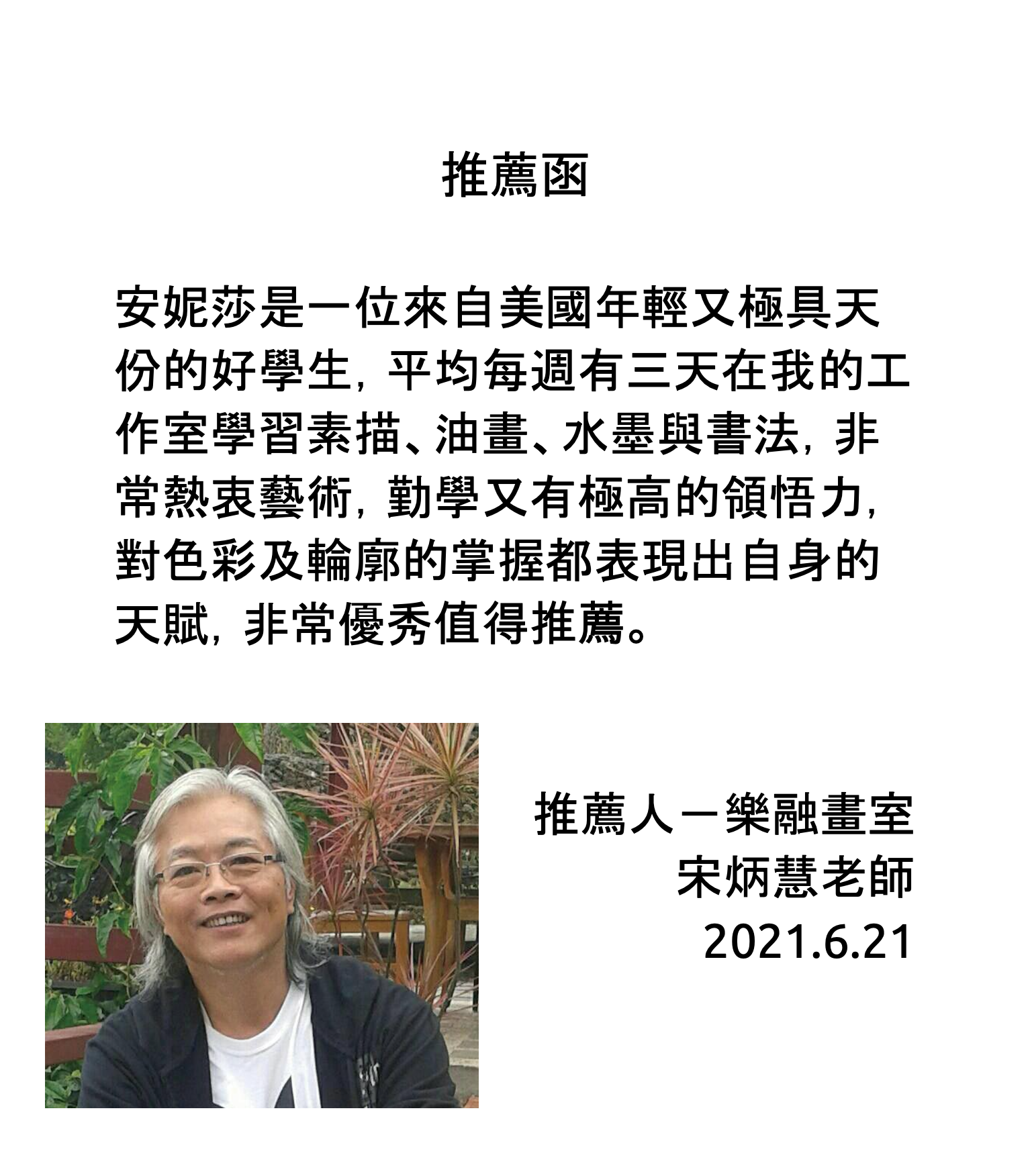 Discover the transformative influence of Song Binghui, a renowned artist and art instructor at Le Rong Studio, on Anisa Ozalp's artistic journey. With a focus on oil painting, Chinese watercolor, calligraphy, and still life drawing, Song Binghui's diverse painting techniques beautifully interpret the continuity of landscapes and nature, merging tradition and contemporary styles. Hailing from Chiayi and currently residing in Taipei, Song Binghui's artistic prowess extends globally, with numerous joint exhibitions across the United States, China, Japan, Korea, and Canada. As the owner and art instructor at Le Rong Studio, he has nurtured Anisa and many other aspiring artists. Experience Anisa's artistic growth through her Social Media posts and admire the pieces that received Song Binghui's appreciation. Witness the dynamic connection between teacher and student as their joint exhibition showcases their artistic synergy.