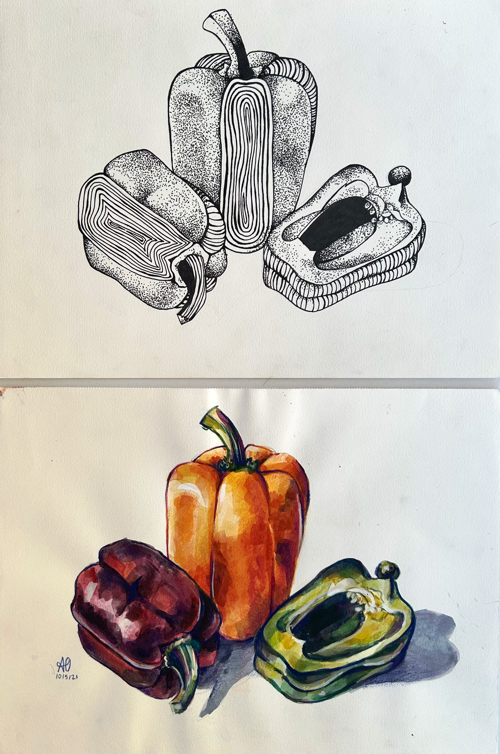 Immerse yourself in the exquisite still-life drawings presented in this collection, from fruits and flowers to dishware and glassware. Each artwork reflects Anisa's dedication to capturing the beauty and essence of these objects, showcasing her mastery of shapes and intricate detailing.